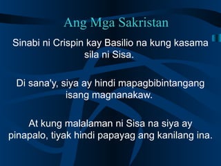 KABANATA 18 Si Padre Salvi ay matamlay na nagdaos ng misa ng araw na iyon. DON PEDRO EIBARRAMENDIA DON SATURNINO IBARRA DON RAFAEL IBARRA DON CRISOSTOMO IBARRA Nang umunlad ang san Diego ang Pilipinong kura ay pinalitan ng Paring Kastila Padre Damaso 2. Noli Me Tangere Kabanata 11 Buod 1.
